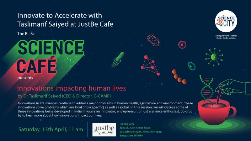 Innovations impacting human lives: Innovations in life sciences continue to address major problems in human health, agriculture and environment. These innovations solve problems which are local (india specific) as well as global. In this session, we will discuss some of these innovations being developed in India. If you're an innovator, entrepreneur, or just a science-enthusiast, do drop by to hear more about how innovations impact our lives.