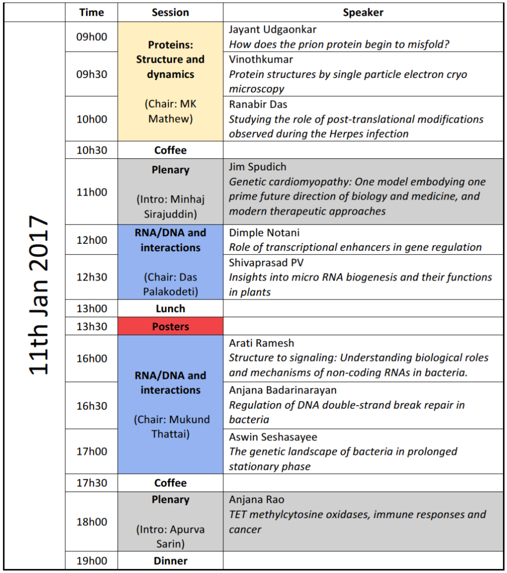 NCBS Annual Talks 2017 - Schedule