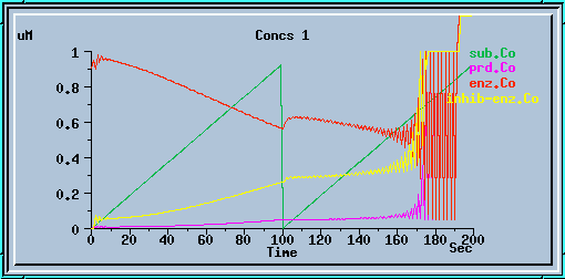 End-product inhibition: Unstable response at dt = 1 sec.